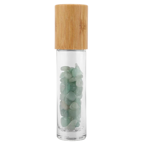 Stikla pudelīte ar rullīti un kristāliem Aventurīns / Aventurine 10ml