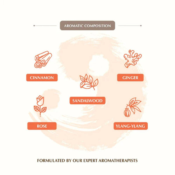 Scent Profile: Cinnamon, Ginger, Sandalwood, Rose, Ylang-Ylang.