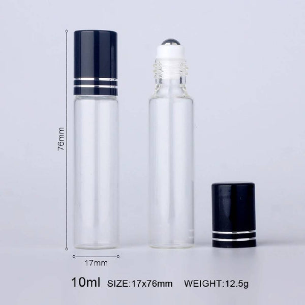 Stikla pudelīte ar metāla rullīti un vāciņu 10ml
